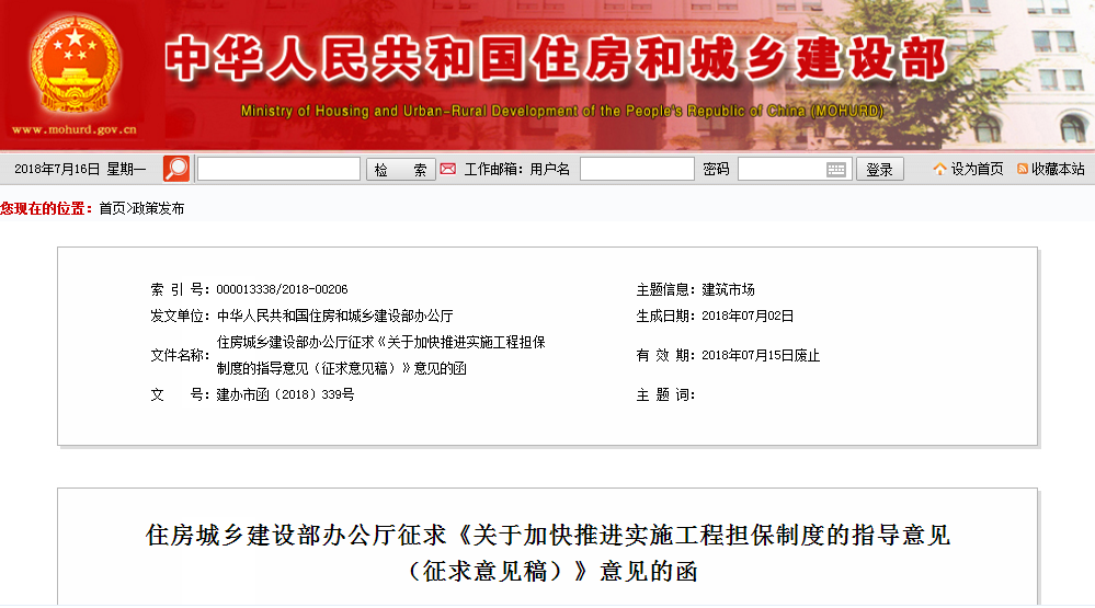為推進工程擔保制度、促進建筑業持續發展,住建部近日發布了《關于加快推進實施工程擔保制度的指導意見(征求意見稿)》(以下簡稱《指導意見》),其中明確強調,到2020年各類保證金的保函替代率提升30%。